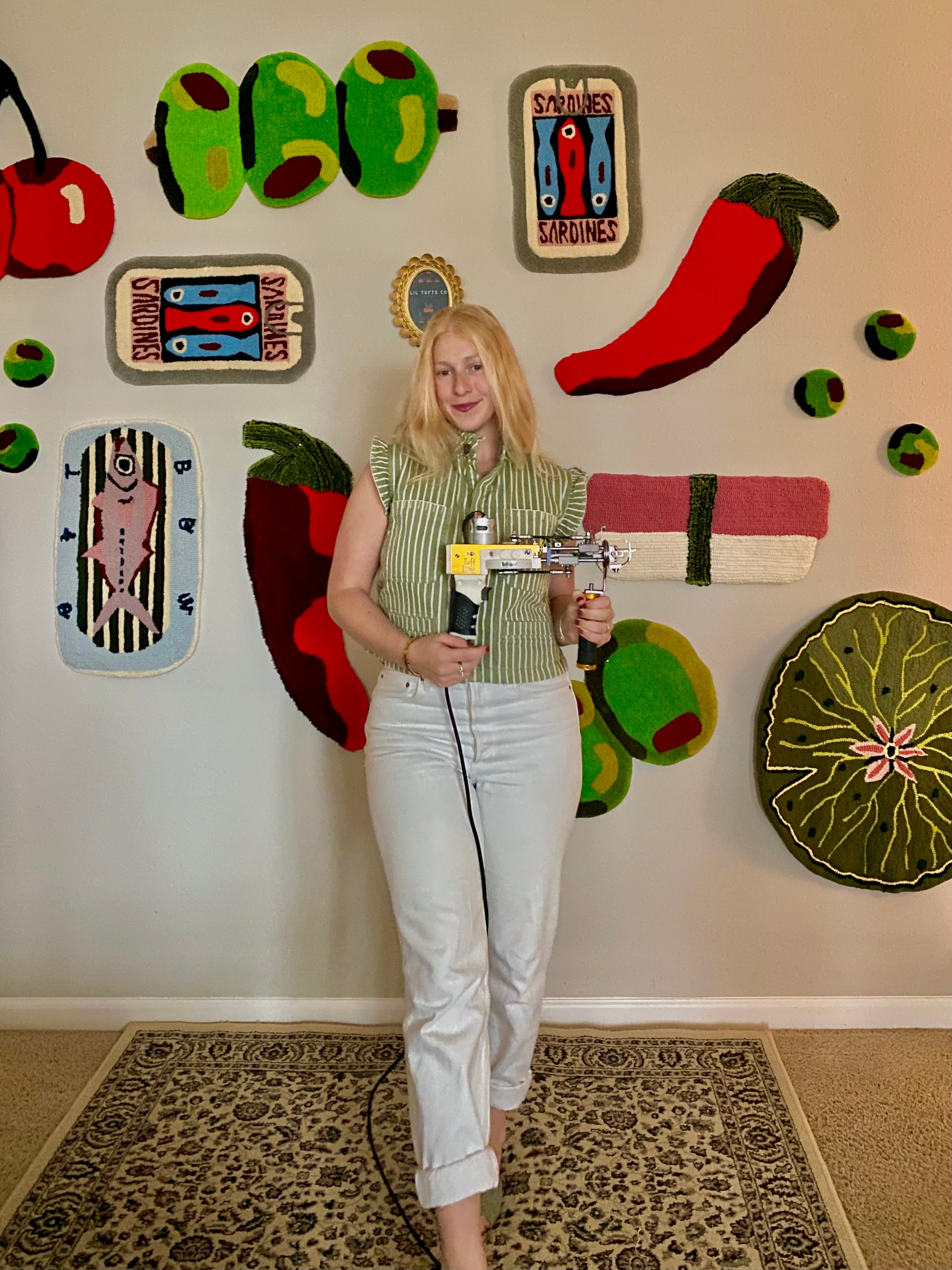 I also find influence in interior design and collaborating with customers. I tend to see objects in terms of color palettes, often thinking, "That would make a great rug" when I’m out and about.